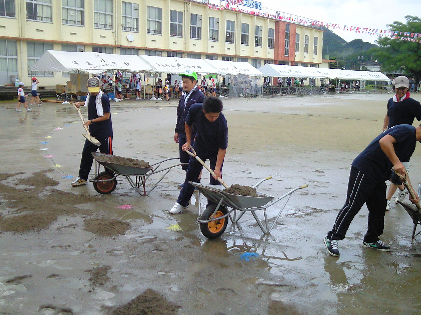 見違えるほどキレイになった校舎周辺には、次の日の日曜参観に駆けつけた父兄一同も