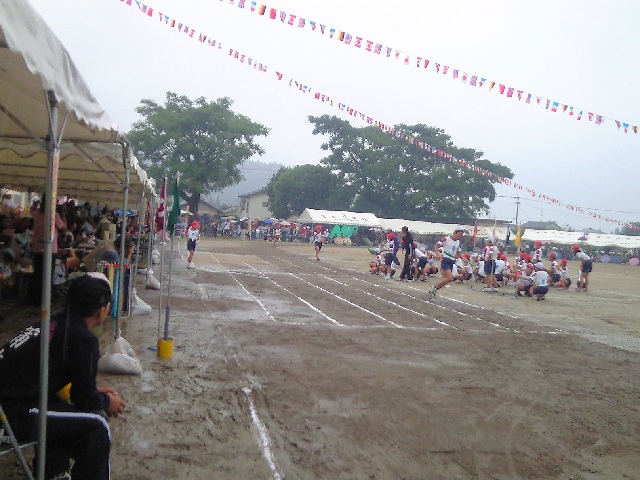 雨脚が強くなる中、紅白対抗リレー等の主要種目が行われ、なんとか閉会式までこぎ着けることができました。