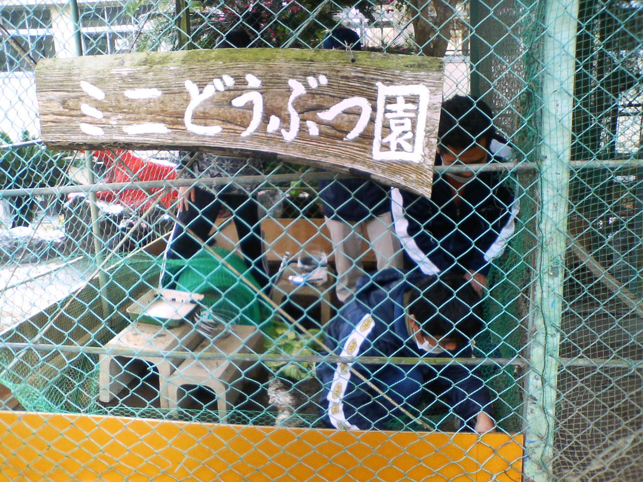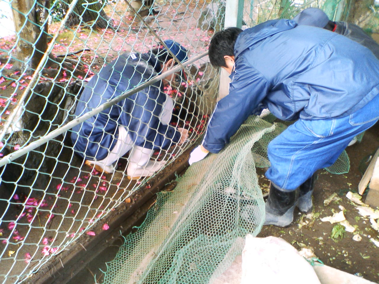 ・ ミニ動物園の金網を改修する