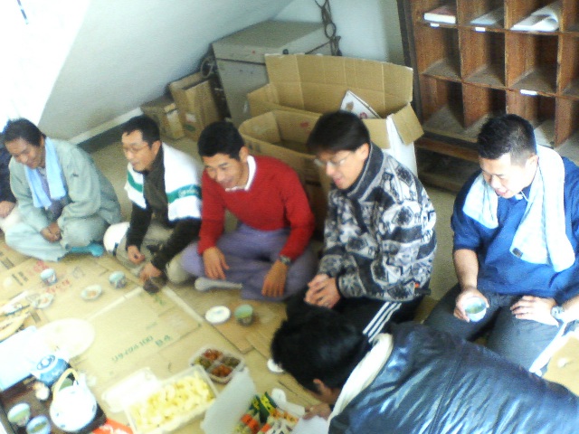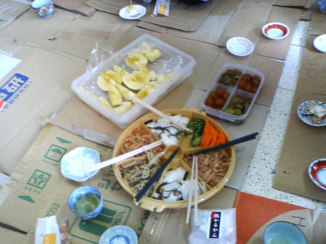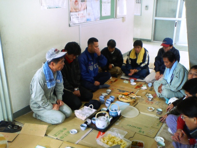 校長からの差し入れと教頭”自慢?”の番茶で ホットタイム。