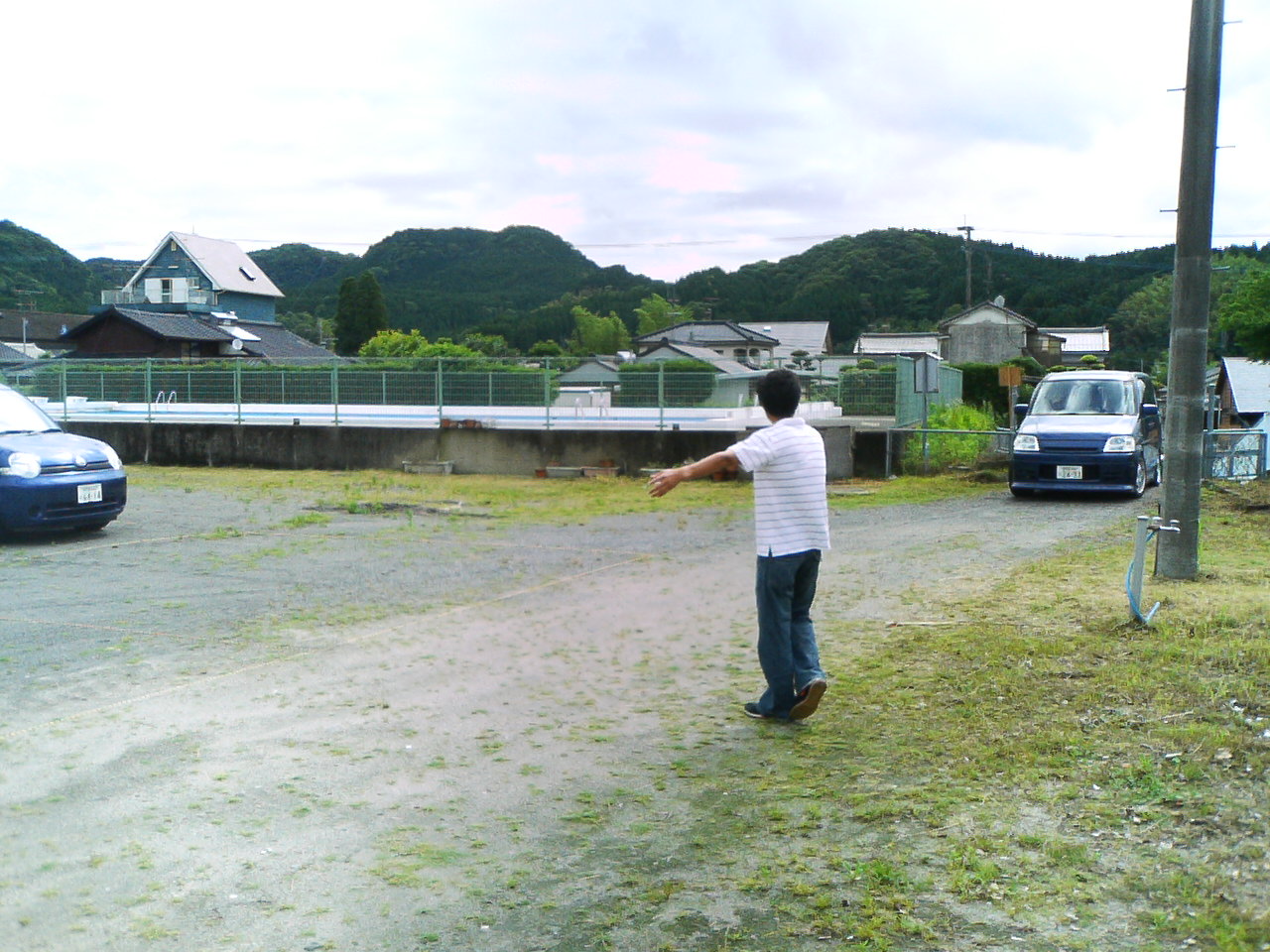 | 駐車場整理をする、福留(祐)会員の後ろ姿 |